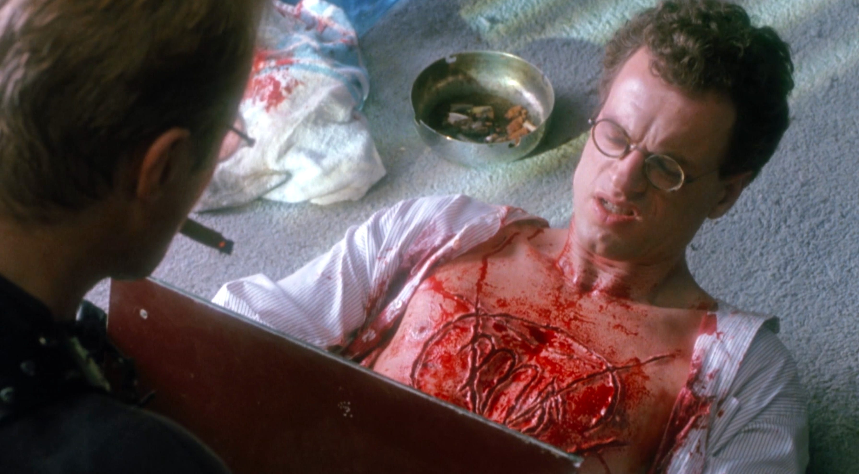 Split second features at least one distinguishing feature in an otherwise stock exercise in lazy writing. Rutger Hauer plays Harley Stone, a defiantly unlikeable cop who draws his crazy future gun on everyone he meets. Alistair Duncan plays Dick Durkin, the college-educated new guy whose name is an endless source of amusement for Stone. He’s brought in to figure out the killer and help track him down by profiling him but all he ever seems capable of is offering a constantly changing diagnosis, “Well, I at first thought that he was psychotic but now I believe him to be a full-blown psychopath!”